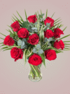 - 10 red Rose , 8 sunflower ,6 white statice , Half Bunch Seasonal green